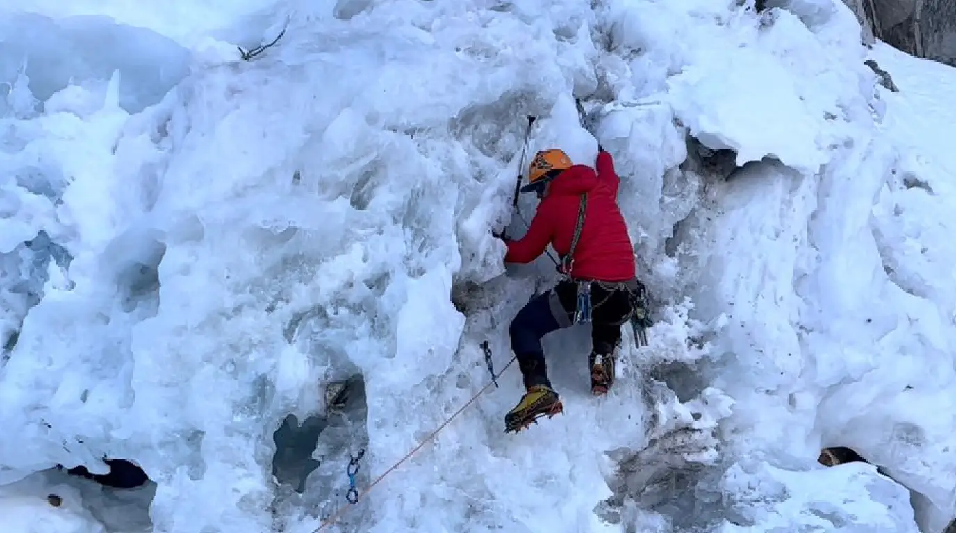 - 13:00 – Escalada técnica del muro de hielo/nieve para acceder al collado y subida de petates.