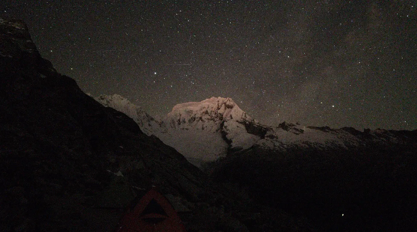 - 02:00 AM: Inicio del ascenso. Salida con linternas frontales por el sendero de morrena hacia la base del glaciar.